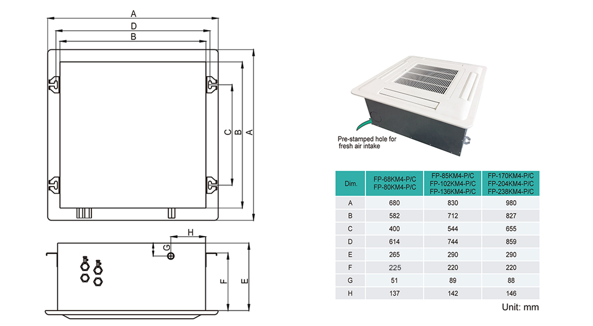 Aesthetic panel design, in ABS material with synthetic washable and removal air filter, auto-swing.
