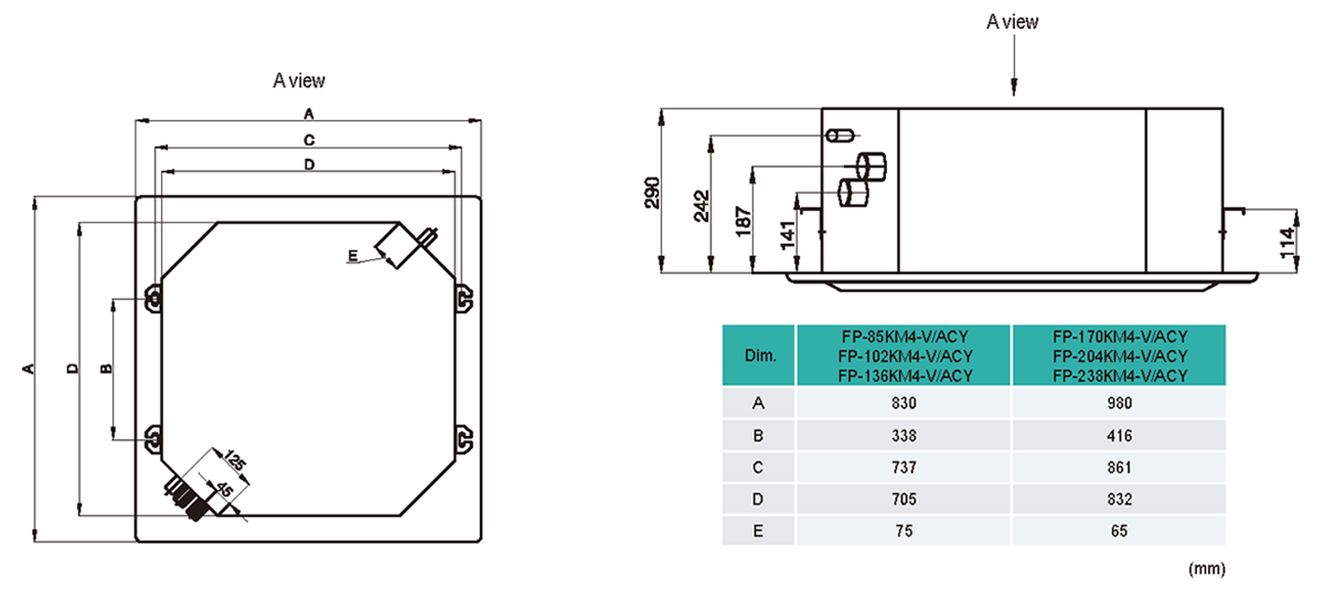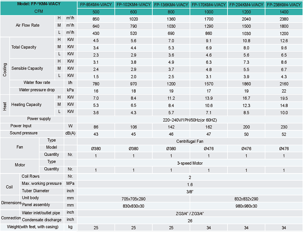 Ceiling mounted and suitable for chilled/hot water systems.